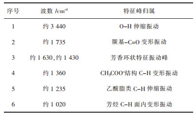 | 表 3 红外光谱特征峰 Table 3 Characteristic peaks of infrared spectra |