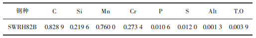 | 表 1 SWRH82B钢化学成分/(质量分数,%) Table 1 Composition of SWRH82B Steel /(mass fraction, %) |