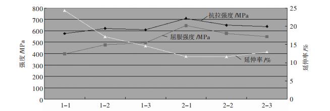 统计6月份发货的产品,共计45.2 t,以卷数计,为22卷,其力学性能波动范围如表 6所列。