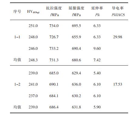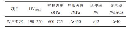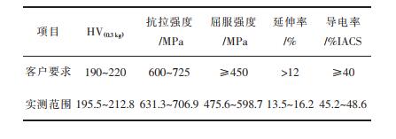 某发动机大电流Cu-Ni-Si合金成品的力学性能及电性能要求如表 2所列。