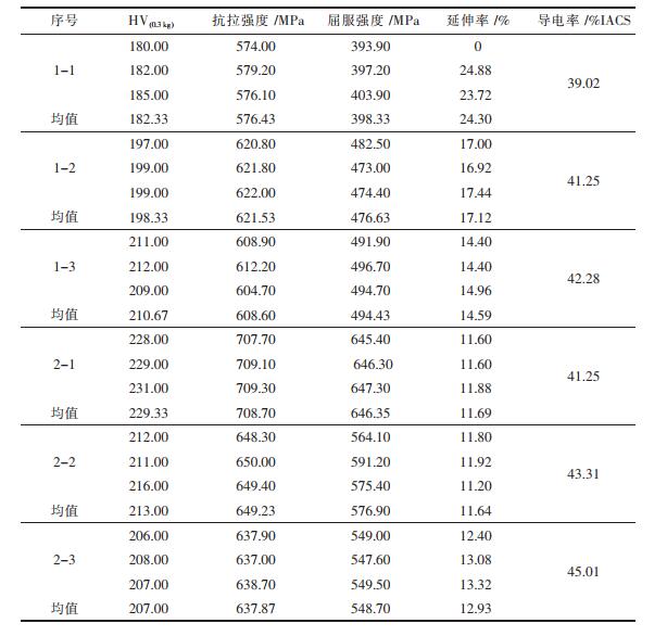 3 结论1)在相同的前提下,随着冷轧加工率的增加,物料的HV硬度、抗拉强度、屈服强度等指标明显上升,延伸率和导电率下降明显。