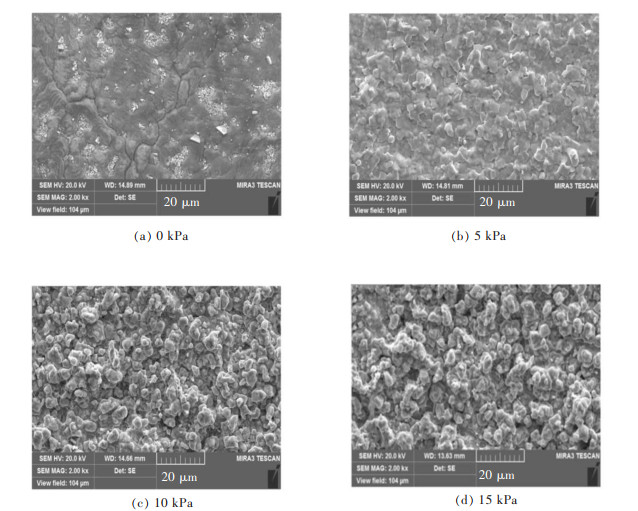 | 图 3 不同氮气压力下烧结后的合金表面形貌 Fig. 3 The SEM pictures of surface morphology of alloys sintered under different nitrogen pressures |