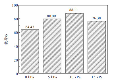 | 图 8 不同氮气压力烧结后样品涂层结合力测试结果 Fig. 8 Testing results of adhesion of coatings on different samples |