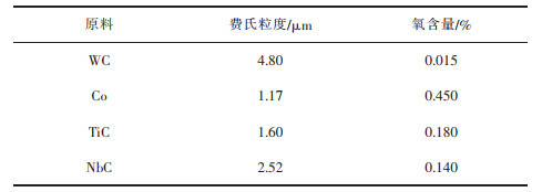 | 表 1 原料粒径及氧含量 Table 1 The particle size and oxygen content of the raw materials |