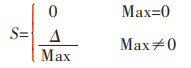 式(1)、式(2)、式(3)中:Δ为R、G、B三分量的最大差值,Max为R、G、B三分量的最大值。