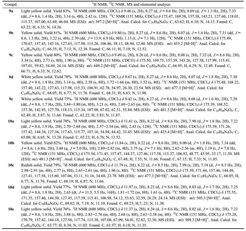 | Table 1 The characterization data of 9a -9e, 10a -10e |