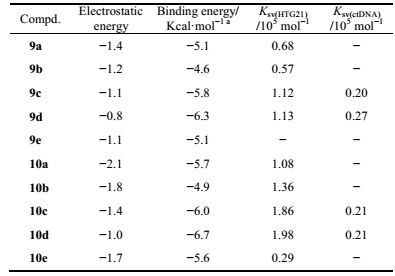 | Table 2 The binding energy data and Ksv values of the ten compounds in the series. a: Binding energy = Vdw-hb-desolv energy + Electrostatic energy + Torsional energy |