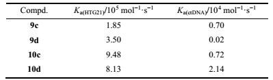 | Table 3 The binding constants Ka values of the compounds 9c, 9d, 10c, 10d |