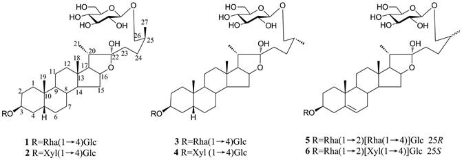 Wang YY, Kou YK. Extraction, separation and structure of steroidal saponins[J]. Huazhong Norm Univ J Postgraduates (华中师范大学研究生学报), 2007, 14: 143-147. |