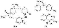 2 含氧化二甲膦片段的先导物严格意义上讲, 研发第三代药物不属于首创性, 但也不会是跟随性的模仿, 因为要对耐药的靶标有效, 结构上一定有特色, 何况作用于ALK激酶的已上市的、处于临床和正在临床前的抑制剂有多种结构骨架, 不能侵犯知识产权。