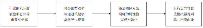 分形裂缝导入模型的基本流程如图 4所示,具体可分解为表征复杂裂缝网络的分形几何形态生成、分形图节点坐标离散化和裂缝的属性赋值等3个部分。