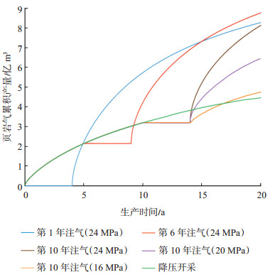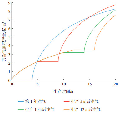 下载原图 图 8 不同注入时间下的页岩气累积产量 Fig. 8 Cumulative production of shale gas at different injection times |