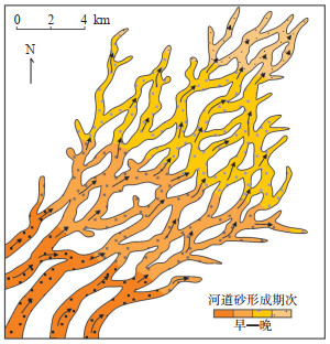 下载原图 图 9 松辽盆地长岭凹陷泉四段小层分流河道生长与分布 Fig. 9 Progressive and distributed pattern of distributary channels of the fourth member of Quantou Formation in Changling Sag, Songliao Basin |