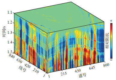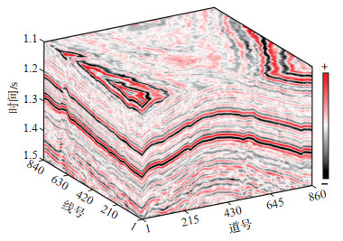下载原图 图 1 松辽盆地北部某研究区三维叠后地震资料 Fig. 1 3D post-stack seismic volume from the north part of Songliao Basin |