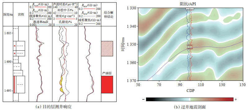 下载原图 图 11 目的层的测井与地震响应 Fig. 11 Well-log and seismic responses of the target layer |