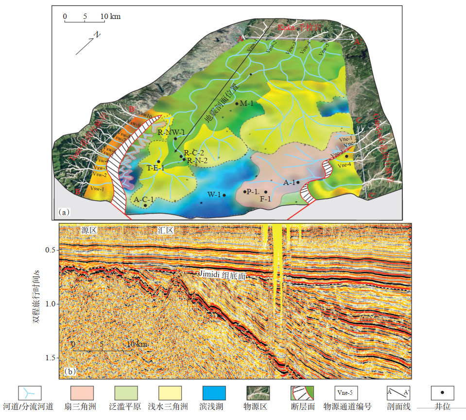 下载原图 图 3 Melut盆地Jimidi组沉积时期(坳陷期)的古地理格局(a)及地震剖面特征(b) Fig. 3 Palaeogeographic framework(a)and seismic section(b)during the deposition of Jimidi Formation in Melut Basin |