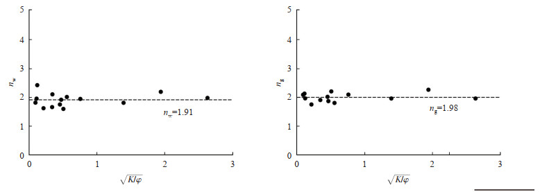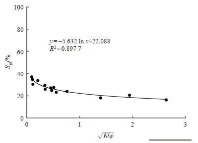 | $ {S_{{\rm{gr}}}} = - 5.632{\rm{ ln}}\sqrt {\frac{K}{\varphi }} + 22.088, {R^2} = 0.8977 $ | (7) |