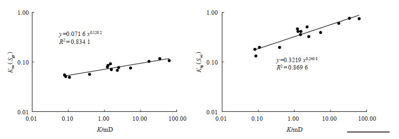 | $ {K_{{\rm{rg}}}}({S_{{\rm{wi}}}}) = 0.3219{K^{0.2408}}, {R^2} = 0.8696 $ | (10) |