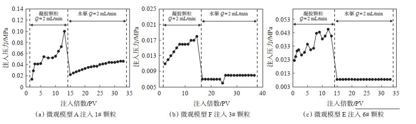(3)凝胶颗粒的抗压强度影响其在孔喉中的运移能力,颗粒抗压强度越大,在孔喉中运移时附加流动阻力越大,注入压力相对较高。