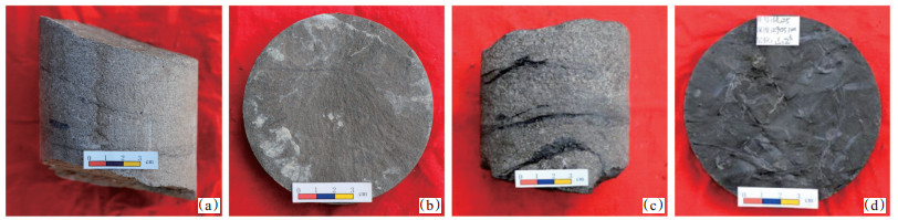 下载原图 图 8 鄂尔多斯盆地东部山2段沉积构造特征 (a)炭线,T25#,山21,2 863.3 m;(b)植物碎屑,S19#,山22,2 717.1 m;(c)炭线,B9井,山23,2911.5 m;(d)植物碎屑,T25井,山23,2 905.1 m Fig. 8 Sedimentary structure characteristics of the second member of Shanxi Formation in eastern Ordos Basin |