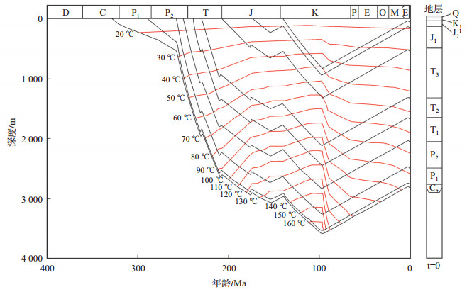 下载原图 图 9 Y20井二叠系(山西组)埋藏演化史 Fig. 9 Burial evolution history of Permian Shanxi Formation in well Y20 |