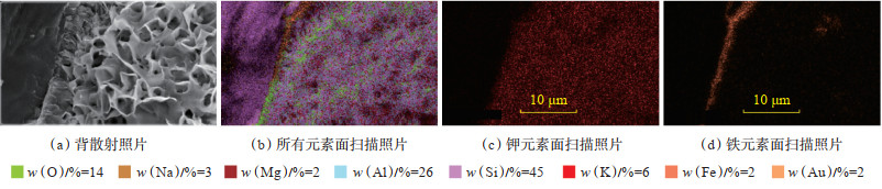 下载原图 图 6 鄂尔多斯盆地延长组Ⅱ型伊利石包膜扫描电镜下的成分分布特征(元333井, 2 324.5 m) Fig. 6 Energy spectrum analysis diagram of type-Ⅱ illite coatings under scanning electron microscope of Yanchang Formation in Ordos Basin |