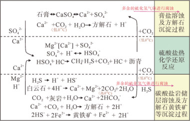 下载原图 图 4 TSR及其对储层的改造过程模式图(据文献[17]修改) Fig. 4 Thermochemical sulfate reduction and its reservoir reformation process |