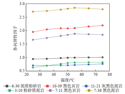 下载原图 图 6 鄂尔多斯盆地三叠系长7岩石样品热膨胀系数各向异性特征 Fig. 6 Anisotropy factors of thermal expansion coefficients of rock samples from Triassic Chang 7 in Ordos Basin |