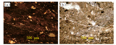 下载原图 图 4 甘泉地区上古生界泥岩镜下照片 (a)泥岩,Q307井,2 267.3 m,山西组,单偏光;(b)泥岩,Q516井,2 733.2 m,本溪组,单偏光。 Fig. 4 Microscopic photos of mudstones of Upper Paleozoic in Ganquan area |