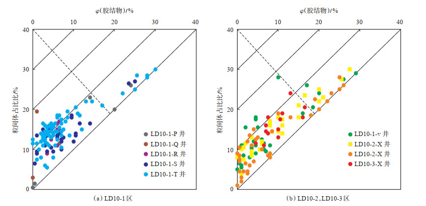 下载原图 图 15 莺歌海盆地LD10区新近系梅山组—黄流组粒间体积占比与胶结物含量的关系 Fig. 15 Relationships between intergranular volume and cement content of Neogene Meishan-Huangliu Formation in LD10 area, Yinggehai Basin |