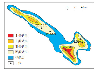 6 油气地质意义莺歌海盆地LD10区中深层梅山组—黄流组致密砂岩储层经历了高温-超压-高CO2背景下一系列复杂的成岩作用过程,控制了有利储层的分布。黄流组中下部砂岩储层受到了超压保护和CO2溶蚀作用的双重影响,孔隙度较黄流组中上部储层大,但是考虑到需要规避高CO2风险带,黄流组中上部致密砂岩储层依然可作为下一步勘探开发的重点区域。综合沉积微相、砂体厚度、成岩作用、物性解释以及CO2含量,对储层进行了分类(图 16),Ⅰ类储层为研究区下一步勘探开发的重点区域。