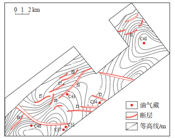 下载原图 图 5 伊通盆地岔路河断陷C40—C48井区古近系主要控藏断层 Fig. 5 Distribution of mainly Paleogene faults controlling reservoir in well region C40-C48 in Chaluhe fault depression, Yitong Basin |