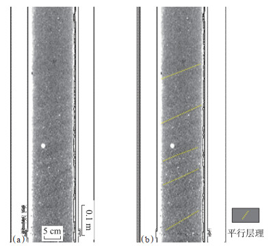 下载原图 图 4 鲁伍马盆地古近系原始岩心扫描照片(a)及层理构造解释(b) Fig. 4 Core scanning photos (a) and sand core with bedding (b) of Paleogene in Rovuma Basin |