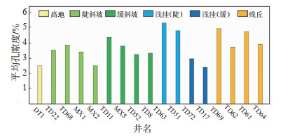 下载原图 图 12 川东五百梯地区不同岩溶古地貌单元典型井石炭系黄龙组地层平均孔隙度分布 Fig. 12 Average porosity distribution of Carboniferous Huanglong Formation in different karst paleogeomorphic units in Wubaiti area, eastern Sichuan Basin |