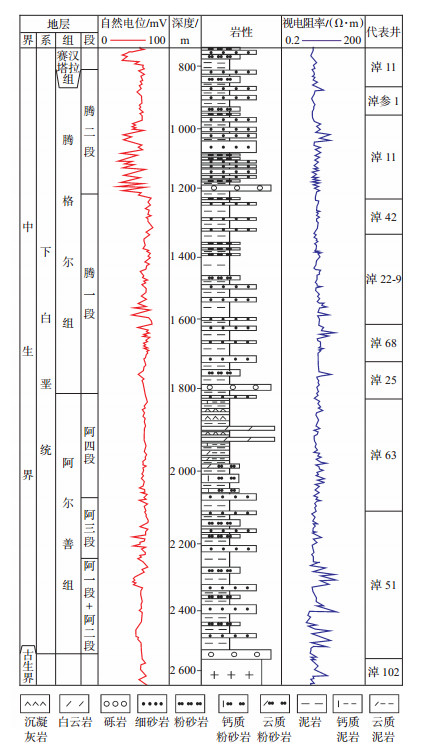 下载eps/tif图 图 2 额仁淖尔凹陷下白垩统地层综合柱状图 Fig. 2 The stratigraphic column of the Lower Cretaceous in Erennao'er Sag |