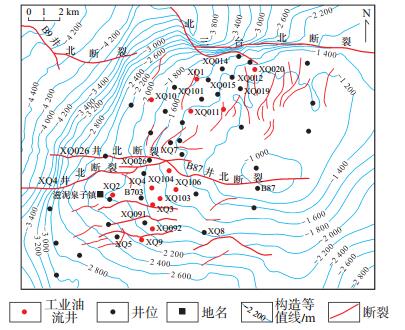 下载eps/tif图 图 1 西泉地区石炭系顶面构造图 Fig. 1 The structure of Carboniferous of Xiquan area |