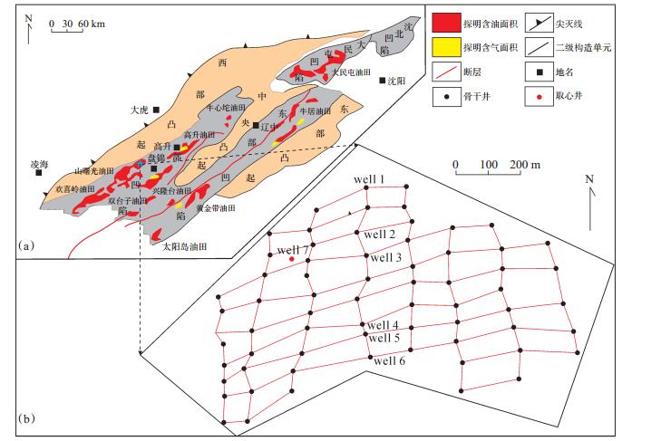 1 区域地质背景辽河坳陷是叠置在中生代盆地之上的新生代含油气坳陷,被一系列北东—南西向深断裂控制。构造演化经历了古新世断陷、始新世—渐新世沉陷和新近纪—今坳陷的3个阶段[12],形成3凸(东部凸起、中央凸起与西部凸起)4凹(东部凹陷、西部凹陷、大民屯凹陷与沈北凹陷)的构造格局(图 1)。