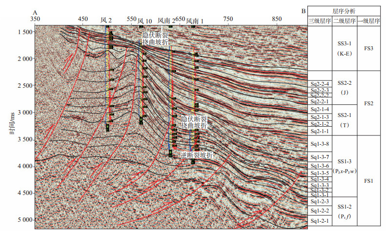 侏罗纪—古近纪盆地均衡坳陷,盆地边缘主要发育隐伏断裂挠曲坡折及其控制的层序建造(参见图 3~4)。