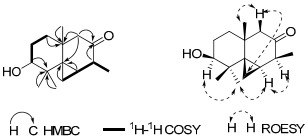 Key 2D NMR correlations for 1.