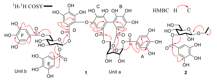 Key1-1H COSY and HMBC correlations of 1–2