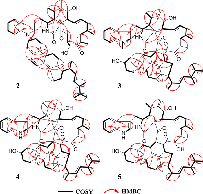 The 1H-1H COSY and key HMBC correlations of 2–5