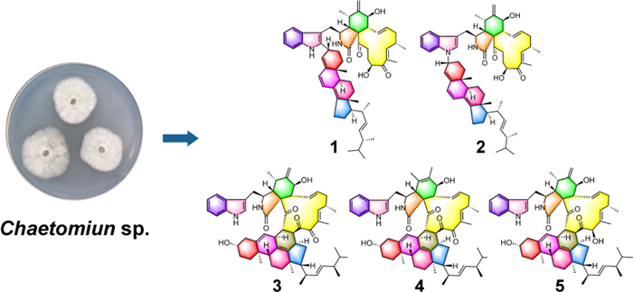 Chalasoergodimers A–E, heterodimers with multiple polymerization modes from a marine-derived Chaetomium sp. fungus