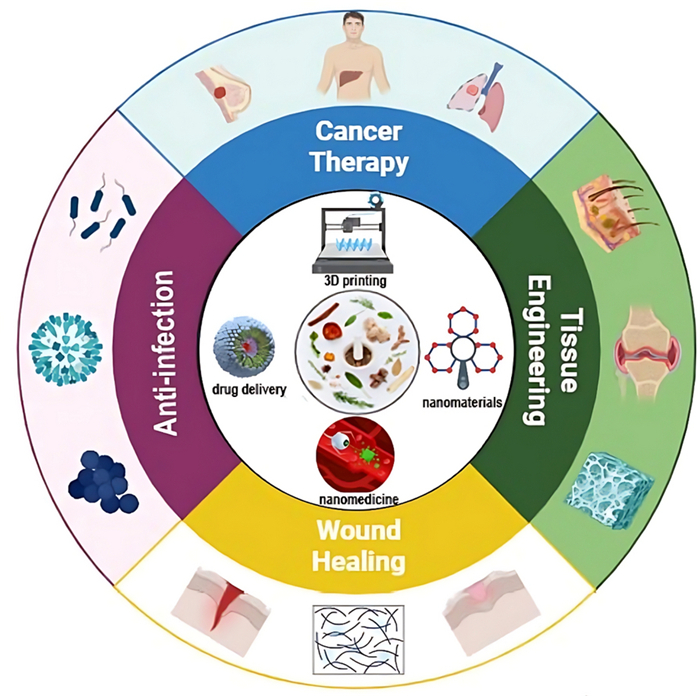 The aim of this review is to thoroughly examine the characteristics of active substances derived from plants and their prospective uses in treating human ailments, focusing specifically on their antibacterial effect, anticancer effect, wound healing properties, and their role in tissue engineering. This work further explores the application of nano-carriers, including nanoparticles, liposomes, and nanoemulsions, to enhance the delivery efficiency of herbal medicines. The emergence of groundbreaking developments in herbal medicine has facilitated the creation of safer and more efficacious therapies for numerous ailments. Through a rigorous analysis of these advancements, this review seeks to elucidate their transformative potential for medical care.