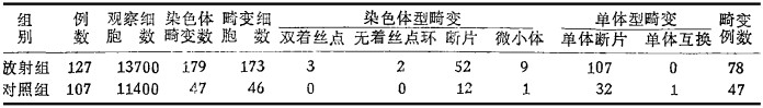 表 2 基层医疗单位X线工作者与对照组淋巴细胞染色体畸变分析 |