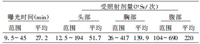 1 介入工作人员剂量测定 1.1 材料与方法采用FJ-377型热释光剂量仪, FJ-411热释光探测器退火炉, LiF(Mg, Cu, P)热释光剂量元件, WF-9125D、X、γ防护巡测仪, 现场测量时分别在介入工作人员的头部、胸部、腹部放置剂量计, 然后进行监测得出读数并记录。