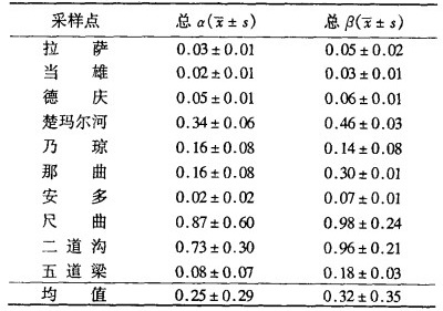 表 1 青藏铁路沿线部分地区地下水中总α、总β放射性水平(Bq/L) |