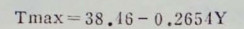 图 3绘出了协和医院周前(私人通信,1973)和本实验室共223例正常人甲状腺最大蓄碘-131率与年龄的关系,结果说明:甲状腺最大蓄碘-131率随年龄的增加而有所降低,统计检验有意义(p < 0.001)。其中15-30岁组104例为31.6±5.6%,31~61龄组119例为28.8±7.9%,两组相差非常显著(p < 0.005),甲状腺最大蓄碘-131率(Tmax, %)与年龄(Y, 岁)的关系可用下式表示: