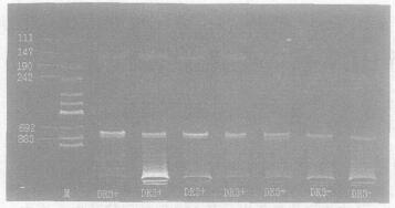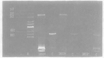 注: DR53引物与内对照引物可能发生了引物间的错配等, 故分管同时扩增 图 4 HLA-DR53等位基因的PCR扩增产物电泳结果 |