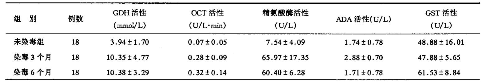 1.6 大鼠血清酶活性测定鸟氨酸氨基甲酰转移酶(OCT)测定, 血清谷氨酸脱氢酶(GDH)活性测定及血清精氨酸酶(Arginase)活性测定参照文献〔9〕进行。OCT活力国际单位为:每升血清每分钟在37 ℃时, 由OCT的作用产生1μmol瓜氨酸定为一个国际单位。谷氨酸脱氢酶活性(毫国际单位GDH=△吸光度×2 ×0.5 ×1 000。精氨酸酶单位=鸟氨酸的微克数×0.505。血清腺苷脱氨酸(ADA)活力测定参照文献〔10〕进行, 其活力单位指1 ml血清使腺苷产生1μg氨氮为一个活力单位。血清谷胱甘肽硫转酶(GST)活力测定参照文献〔11〕进行, 一个GST酶单位活性, 相当于在37 ℃条件下1 min催化1μmol CDNB与GSH结合的能力。