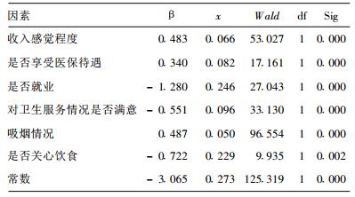 1.3 调查内容年龄、性别等特征变量; 是否赞成非家庭养老方式、赞成何种非家庭养老方式、对现有卫生服务是否满意、对饮食是否关心等行为变量; 而经济变量则涉及是否享受医疗保险、经济收入等。